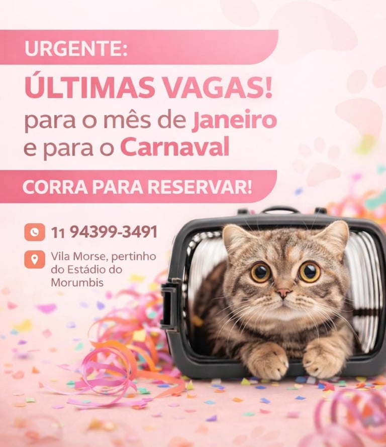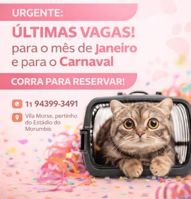 Somos um hotel exclusivo para gatos no Morumbi, São Paulo, com mais de 8 anos de experiência no manejo felino. Oferecemos quartos individuais, sem baías ou gaiolas, garantindo total privacidade e sem contato com gatos desconhecidos . Nossa estrutura premium e equipe especializada garantem o cuidado e conforto que seu felino merece. Deixe seu gato em boas mãos e proporcione a ele uma hospedagem tranquila e personalizada!